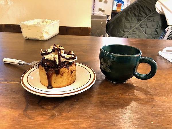 再跨過心中山去登波咖啡喝杯咖啡Sunny泡了一杯酒釀發酵咖啡豆的熱咖啡及烤一個肉桂捲