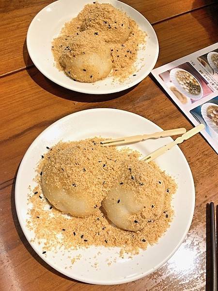 在北港甜湯買几份燒麻糬及芋頭桂圓米糕粥去作給他們吃