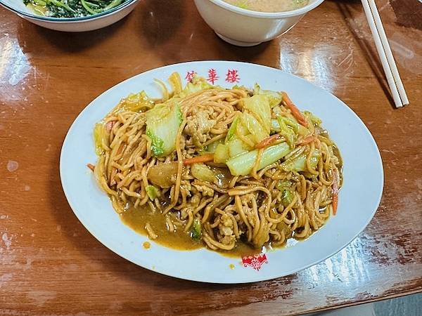 咖哩炒麵沒基隆阿華咖哩炒麵色澤深配料也單薄些