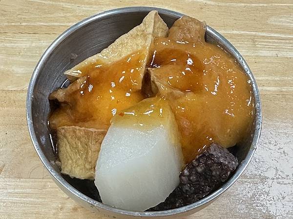 一碗小份甜不辣及一條豬血糕